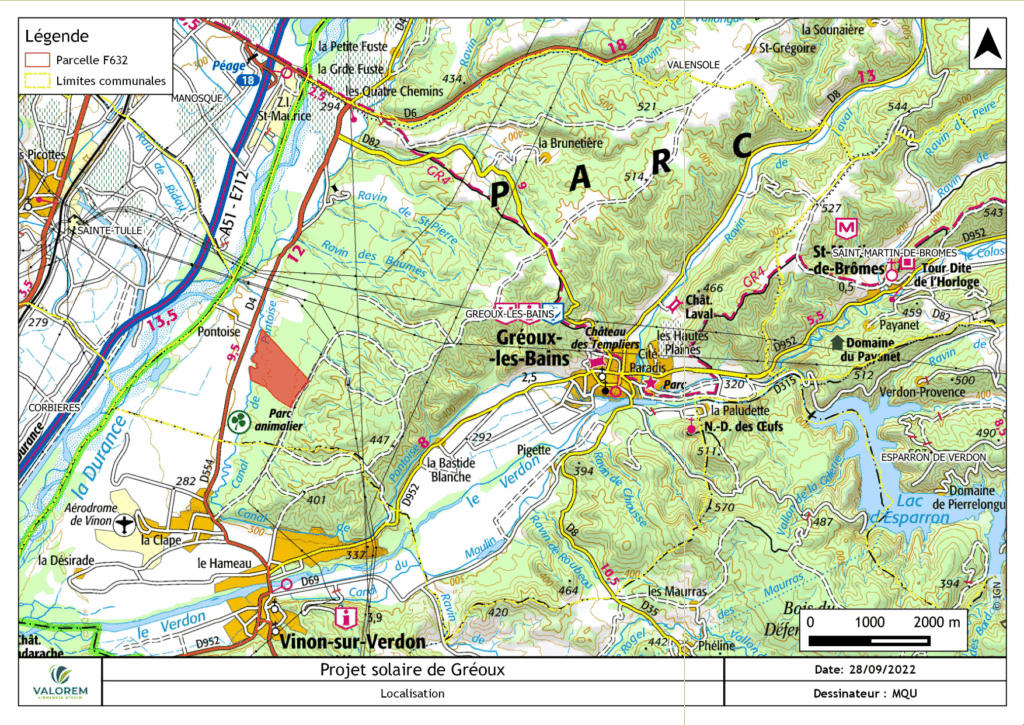 Depuis fin 2021, VALOREM étudie la possibilité d’installer un parc photovoltaïque sur la commune de Gréoux-les-Bains. La zone d’étude de 103 hectares est située sur des terrains privés à l’ouest de la commune, au sud du parc solaire déjà existant.